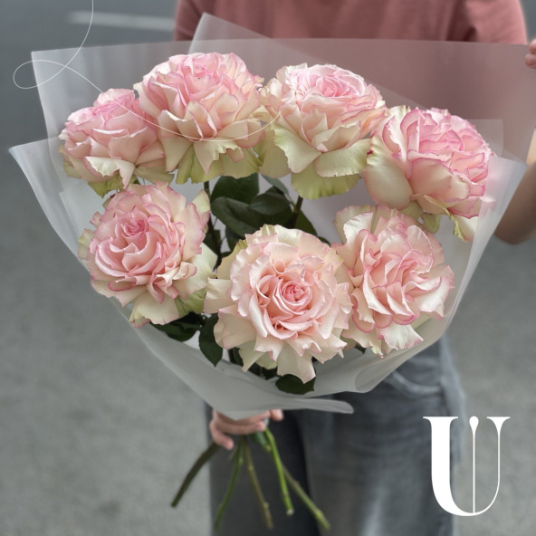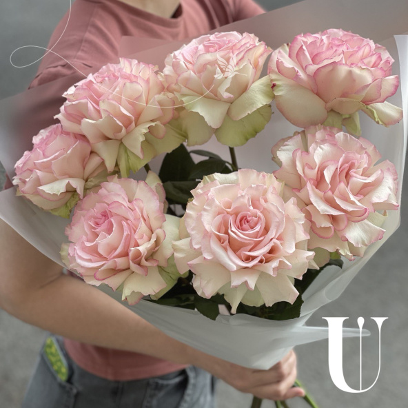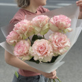 Нежная композиция из пионовидных роз в дизайнерской упаковке