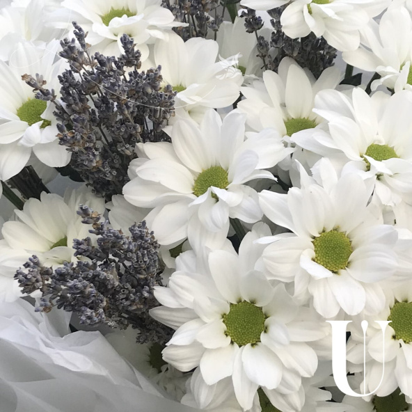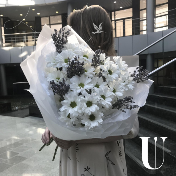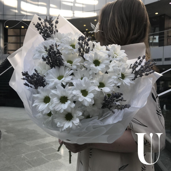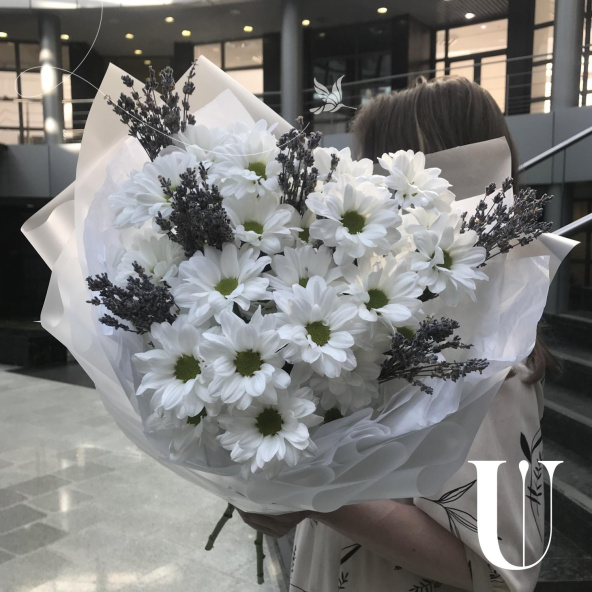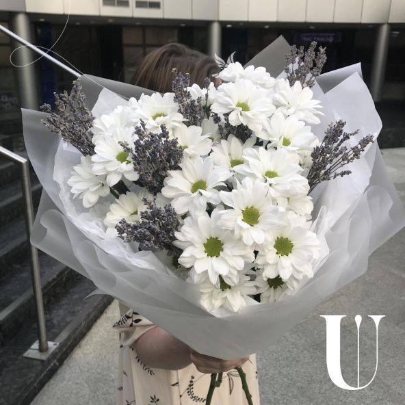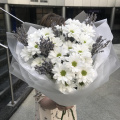 Этот утонченный букет включает в себя изящную лаванду и нежные хризантемы кустовые. Он запакован в стильную дизайнерскую упаковку и украшен атласной лентой. Идеальный подарок для любого случая, который порадует своим неповторимым видом и нежным ароматом.