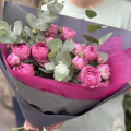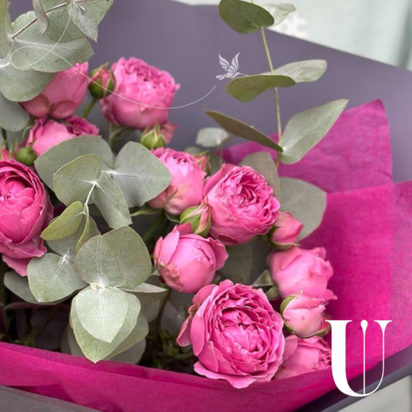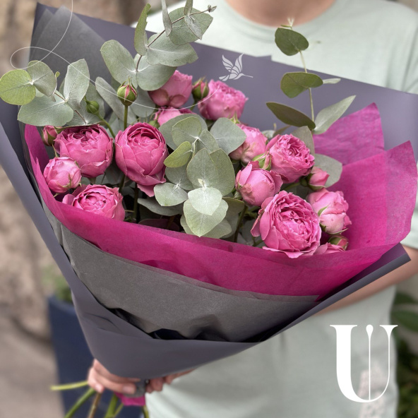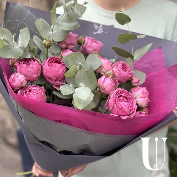 Монобукет из кустовых пионовидных роз Джульетта в упаковке