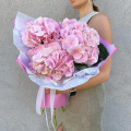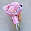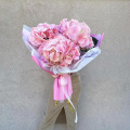 Монобукет из розовых кустовых пионовидных роз в дизайнерской упаковке