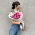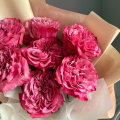 Монобукет из пионовидных роз Кахала и лимониума в нежной упаковке