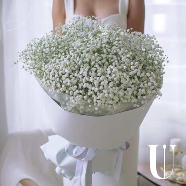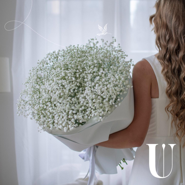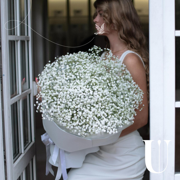 Воздушный объемный букет из белых ароматных гипсофил.