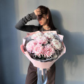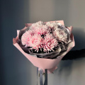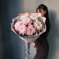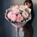 Стильный букет из пионвидных розовых роз в дизайнерской упаковке