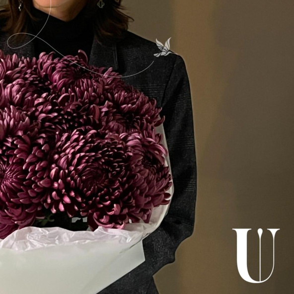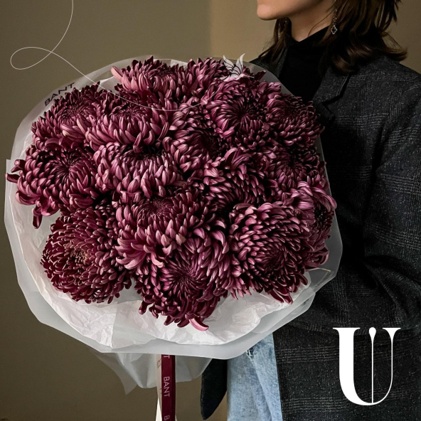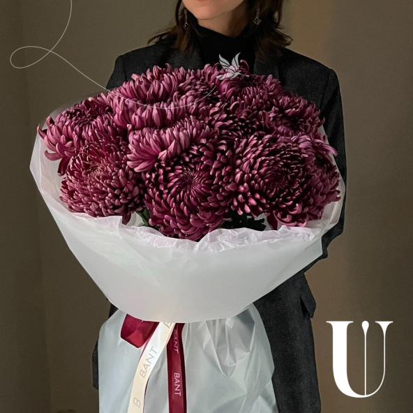 Букет с хризантемами Bigoudi — идеальный вариант для мам и бабушек, подруг, сестер, коллег и любимых женщин.