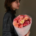 Монобукет из роз Готча и роз Пинк Мондиаль в дизайнерской упаковке