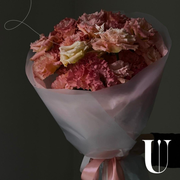 Букет из розовых эустом в белой дизайнерской упаковке