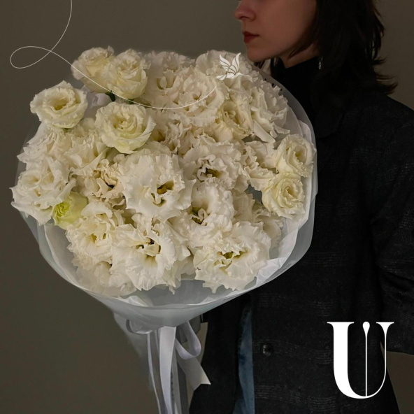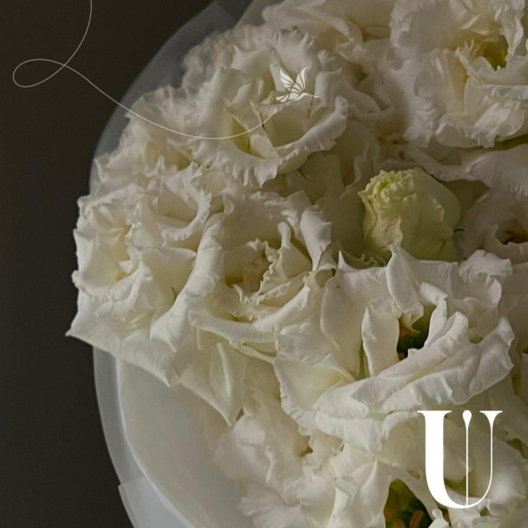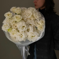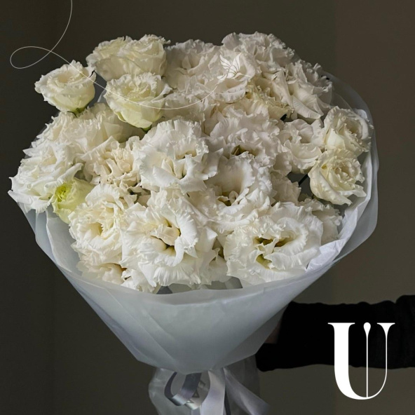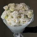 Монобукет из нежных и розовых кустовых роз в дизайнерской упаковке