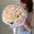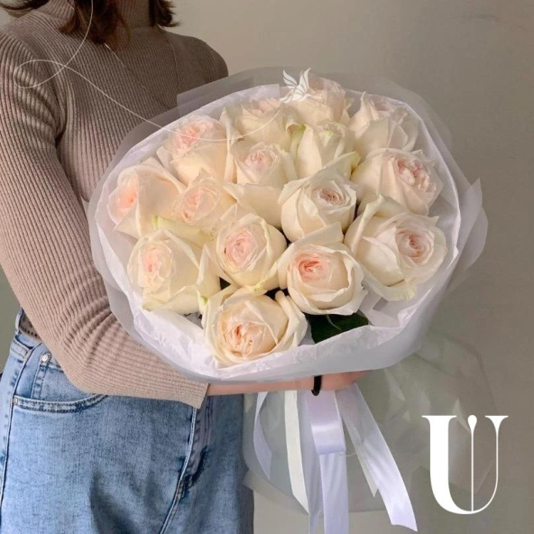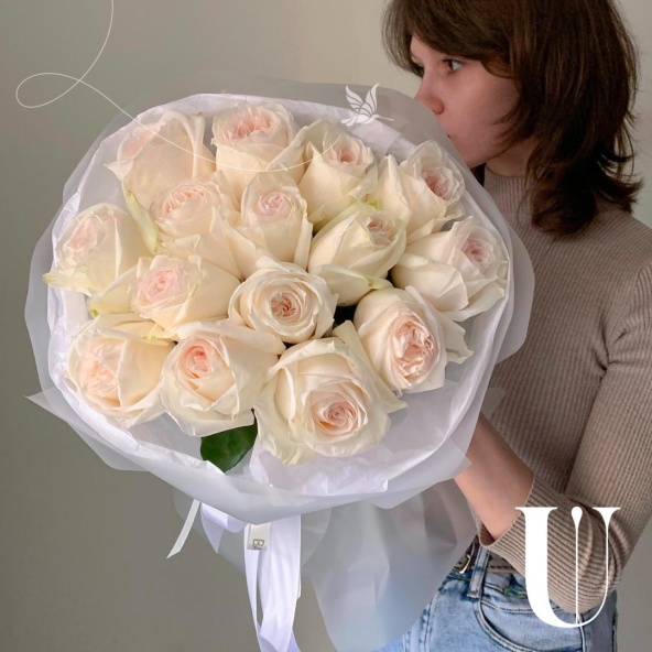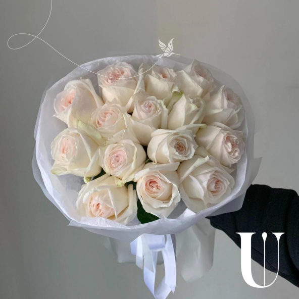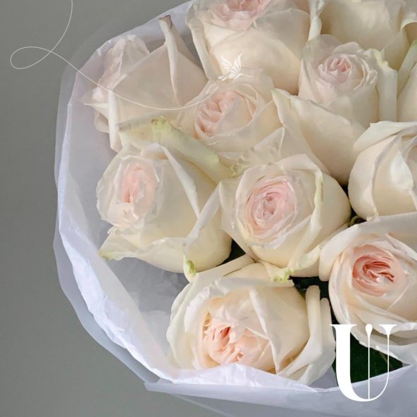 - Роза Вайт Охара, Эквадор, бело-розовая, пионовидная 50 см. - 15 шт