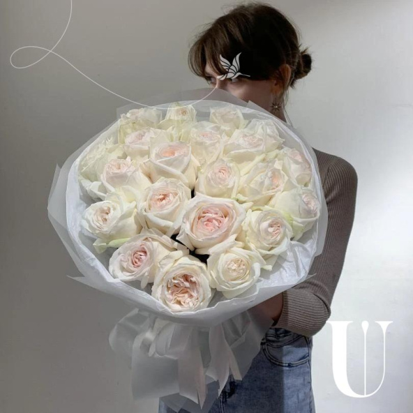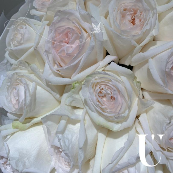 - Роза Вайт Охара, Эквадор, бело-розовая, пионовидная 50 см. - 21 шт