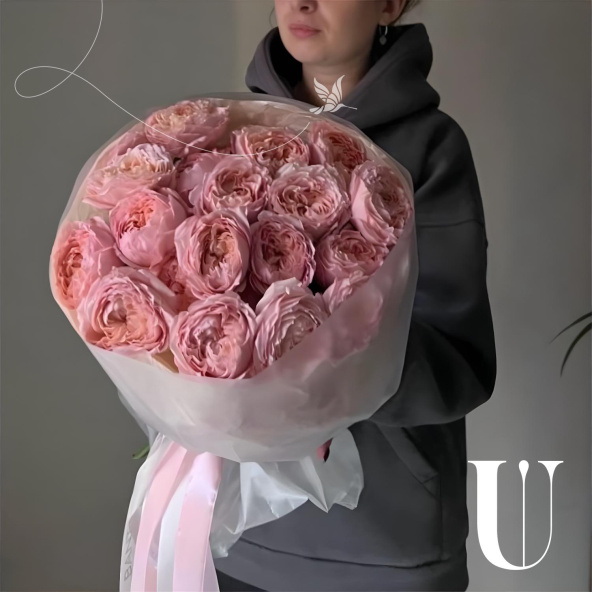 Букет из 7 пионовидных кустовых роз сорта Сильва Пинк