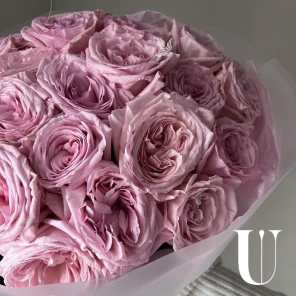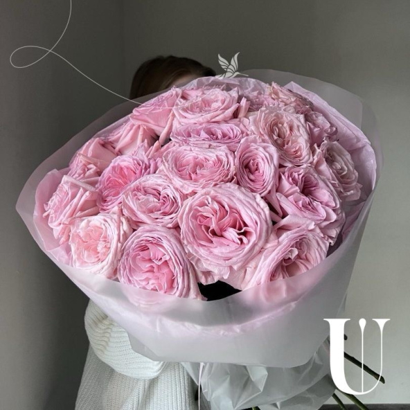 Букет из пионовидных роз Кантри Блюз в упаковке