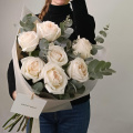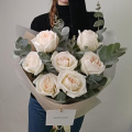 Букет из кремовых роз Шиммер в дизайнерской упаковке