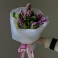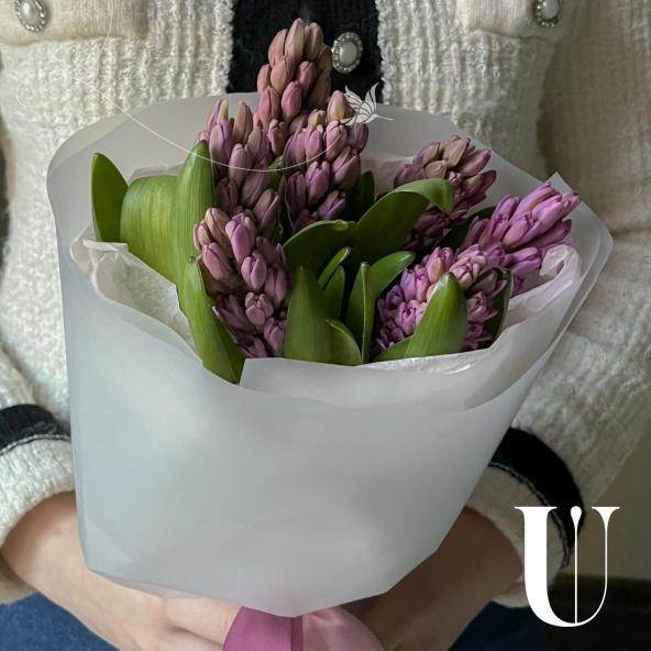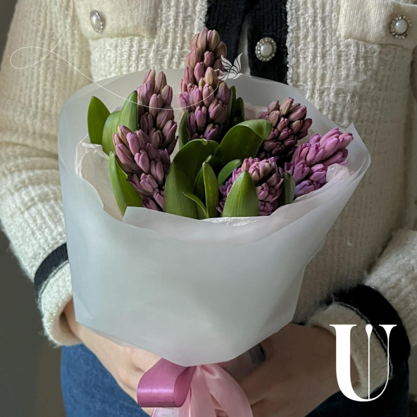 Яркий и ароматный букет из 7 свежих гиацинтов – идеальный способ подарить тепло и радость. Мягкие пастельные оттенки создают атмосферу утончённой элегантности, а насыщенный цветочный аромат напоминает о первых весенних днях.