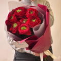 Монобукет из 7 красных роз в дизайнерской упаковке