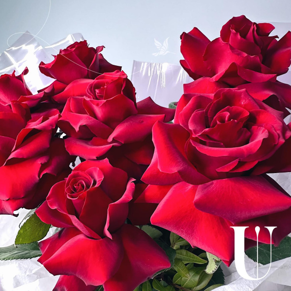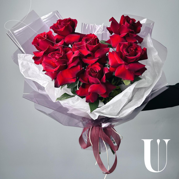 Монобукет из 7 роз сорта Ред Наоми в матовой пленке