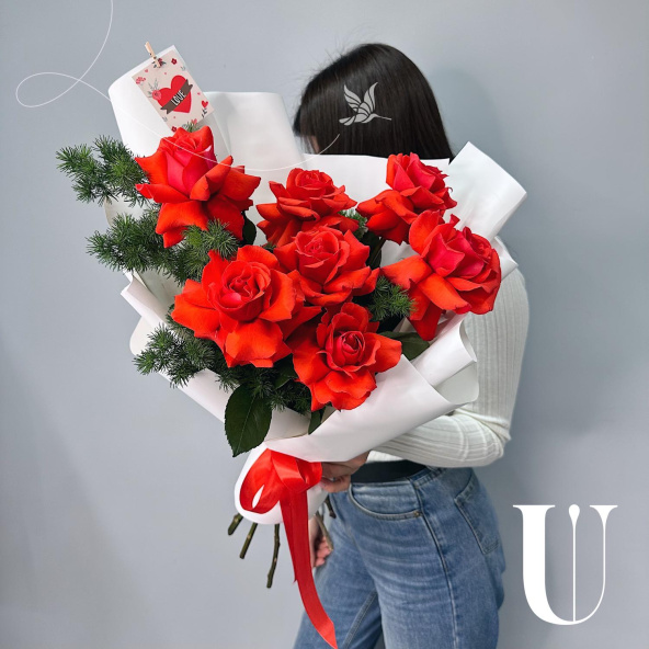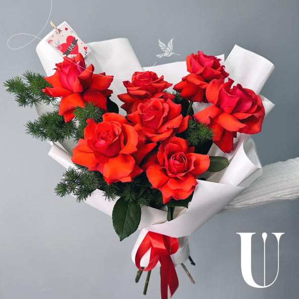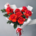Монобукет из красных роз в дизайнерской упаковке