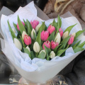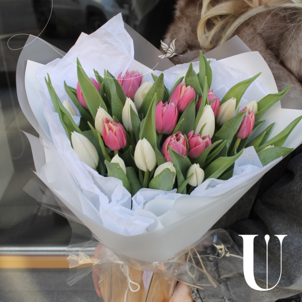Этот букет тюльпанов создан для создания весеннего настроения! Цветочный комплимент на неформальной встрече обеспечит хорошее впечатление о Вас! Дарите бизнес партнерам на встречи, подругам и друзьям, коллегам по работе или жене, чтобы просто напомнить ей о том, какая она красивая. Стойкость в среднем от 4х до 10 дней! К каждому заказу: - прилагаем кризал - средство для дезинфекции воды, чтобы цветы стояли дольше - подпишем открытку с Вашими пожеланиями - аквабокс с водой, чтобы цветы в дороге были на водной подпитке
