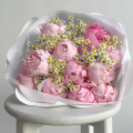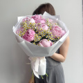 Букет из нежно-розовых кустовых пионовидных роз в упаковке