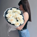Монобукет из 7 роз сорта Капучино и эвкалипта в дизайнерской упаковке