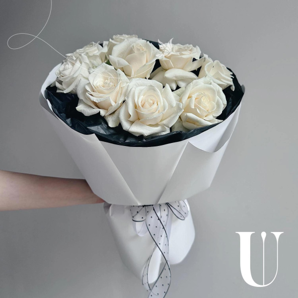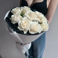 Монобукет из белых кустовых хризантем в дизайнерской упаковке