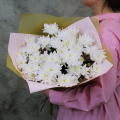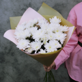 Классический букет из 7 белых кустовых хризантем в матовой пленке с атласной лентой — это стильный и элегантный подарок для любого повода. Белые кустовые хризантемы, собранные в монобукет, украсят любой праздник или торжественное событие.