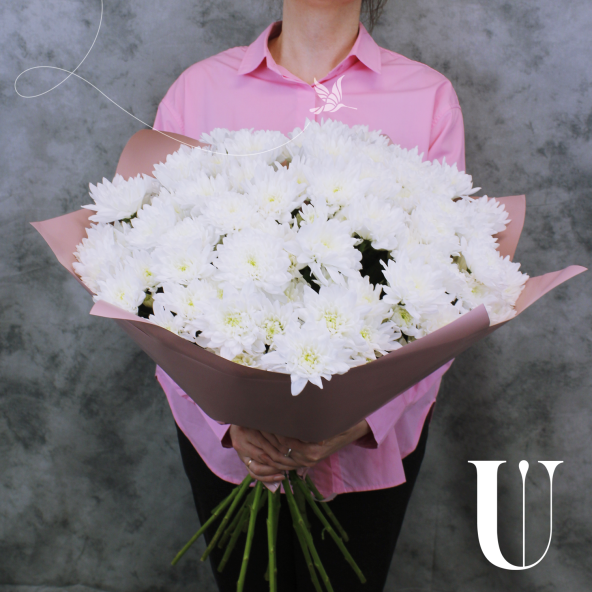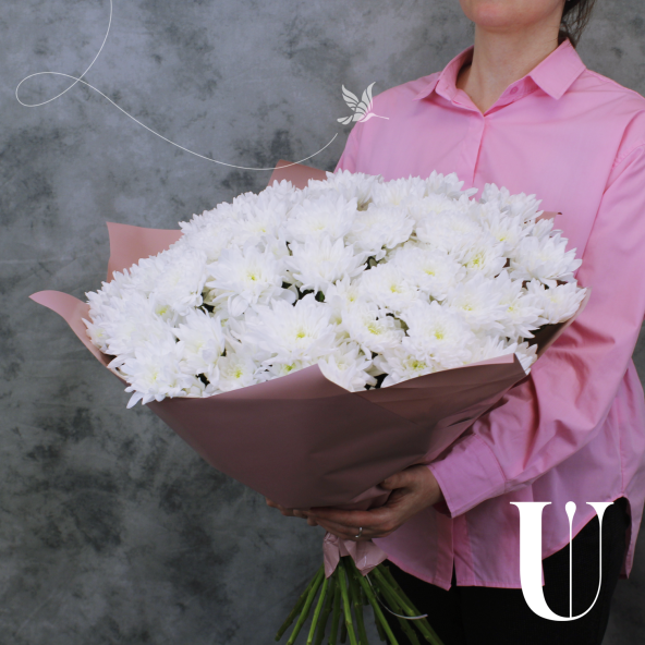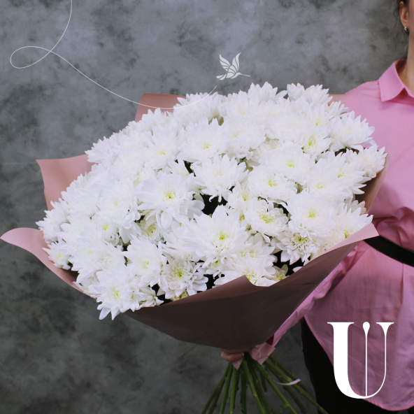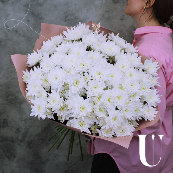 Классический букет из 15 белых кустовых хризантем в матовой пленке с атласной лентой — это стильный и элегантный подарок для любого повода. Белые кустовые хризантемы в букете создают неповторимую нежную композицию, которая придется по вкусу даже самому искушенному получателю.