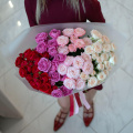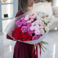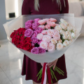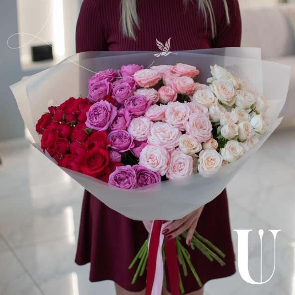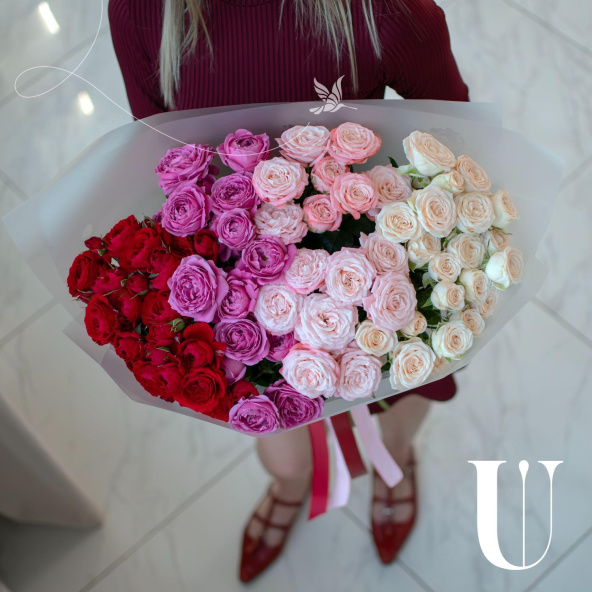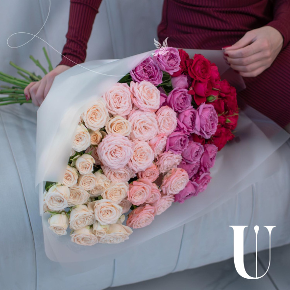 Букет из пионовидных роз Кантри Блюз в упаковке
