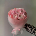 Монобукет из роз Готча и Пинк Мондиаль в дизайнерской упаковке