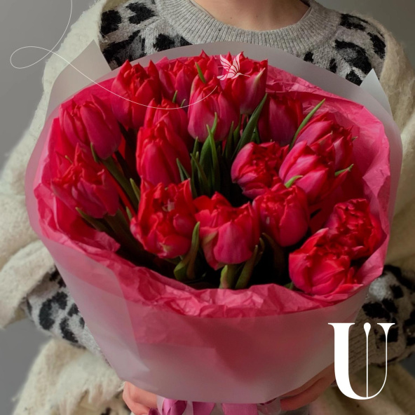 Кулечек хрустящих тюльпанов! Пионовидные сорта особенно ценятся за стойкость и пышное раскрытие в тепле. Бархатистые лепестки, играющие оттенками, привносят в дом атмосферу весны и легкости. Уход прост: регулярно меняйте воду, подрезайте стебли под углом и избегайте прямых солнечных лучей. Позвольте себе насладиться весенней роскошью!