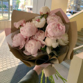 Монобукет из розовых кустовых пионовидных роз в дизайнерской упаковке