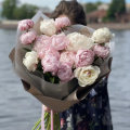 Букет из 21 розовой пионовидной розы Кантри Блюз в стильной упаковке