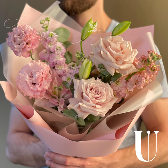 Мини-букет из розового хлопка и эвкалипта в упаковке