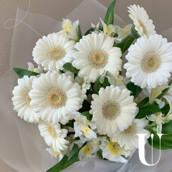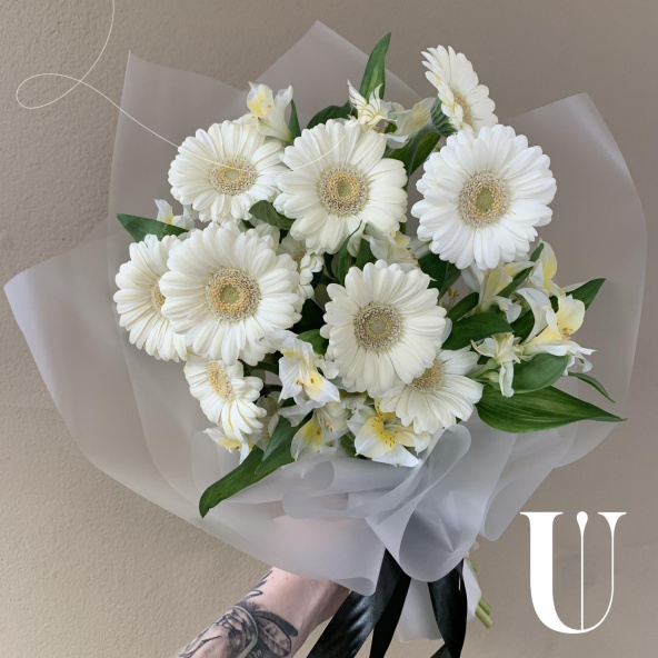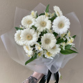 Монобукет из белых кустовых хризантем в дизайнерской упаковке