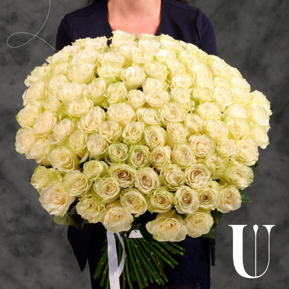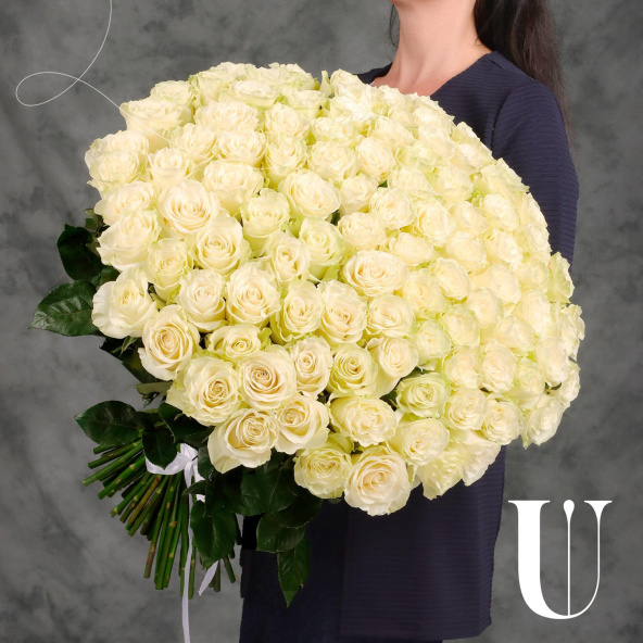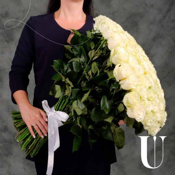 Роза Мондиаль, Эквадор, белая, 70 см. - 101 шт