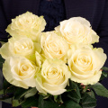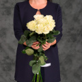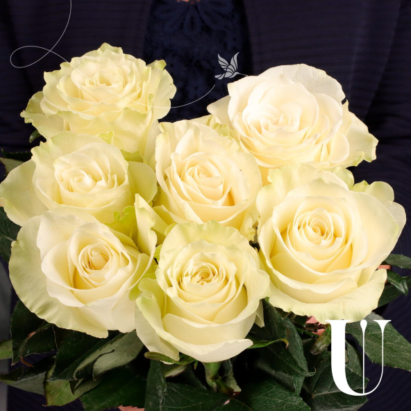 Монобукет из 7 роз сорта Капучино и эвкалипта в дизайнерской упаковке