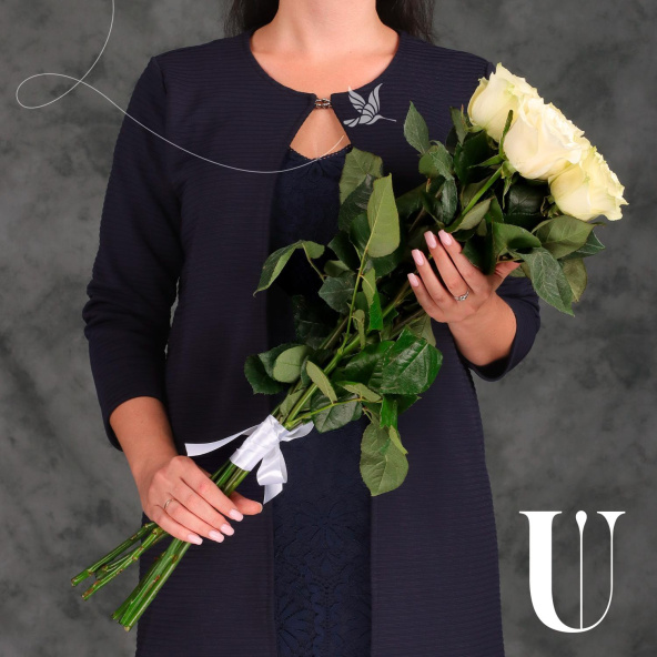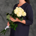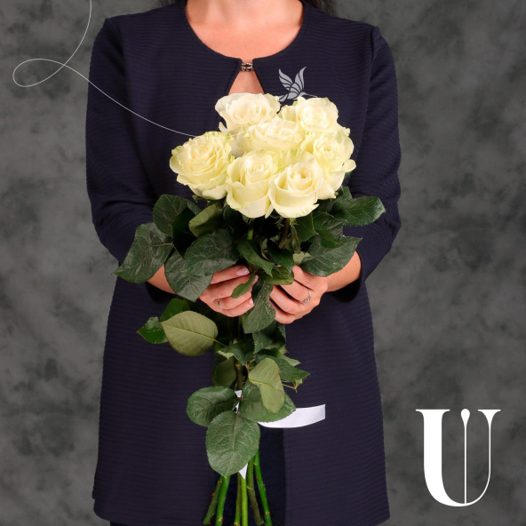 Монобукет из 9 роз солрта Венделла 60 см в белой упаковке