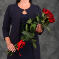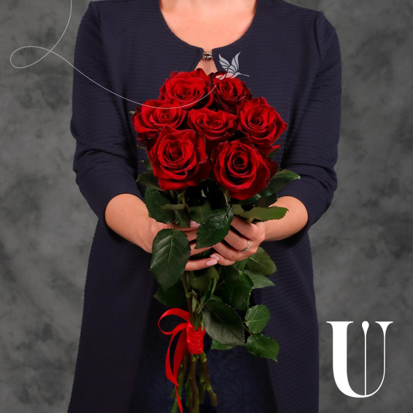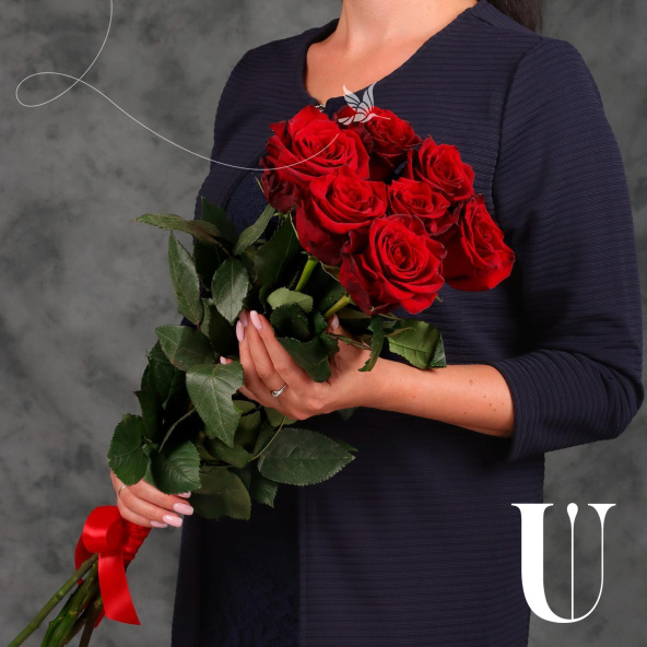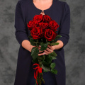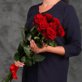 Монобукет из 9 роз сорта Ред Наоми в упаковке