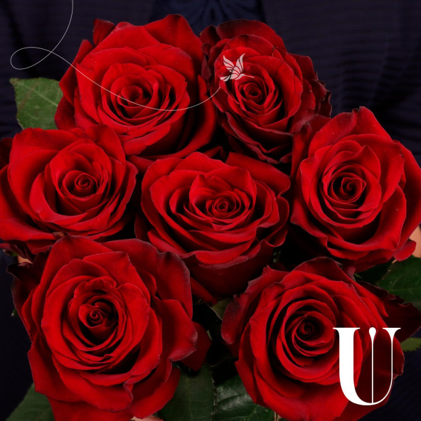 Монобукет из 7 роз сорта Кантри Блюз в дизайнерской упаковке