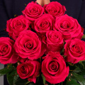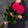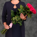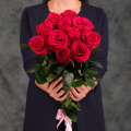 Монобукет из алых роз сорта Нина 60 см в упаковке