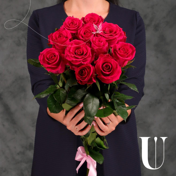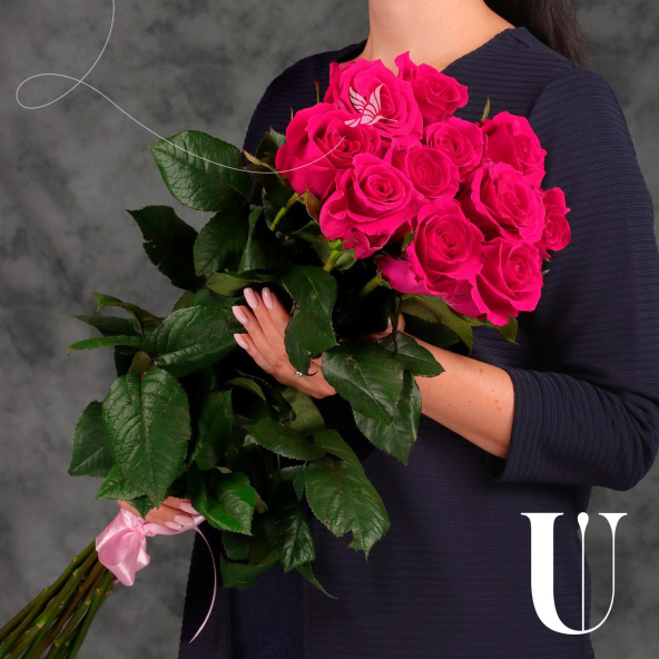 Монобукет из 9 роз сорта Мондиаль в матовой пленке