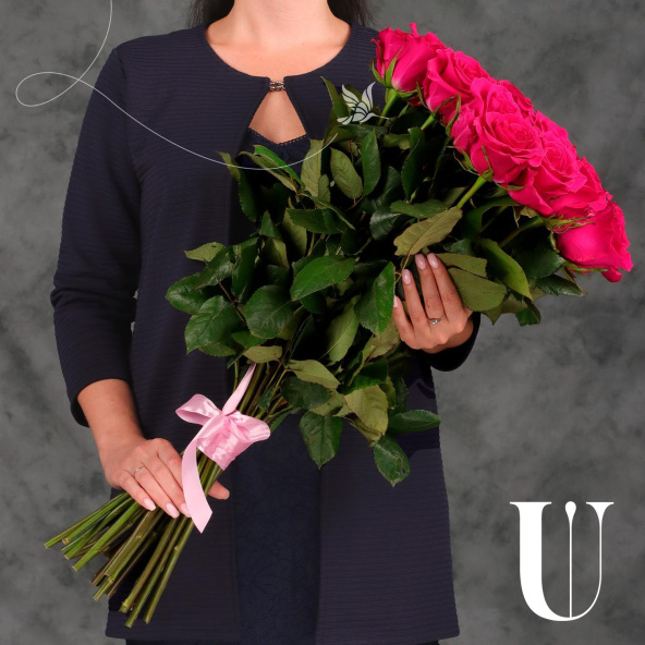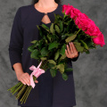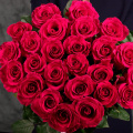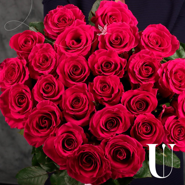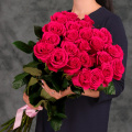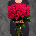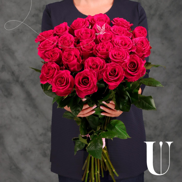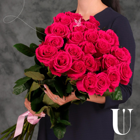 Монобукет из 25 роз сорта Ред Наоми в упаковке фоамиран