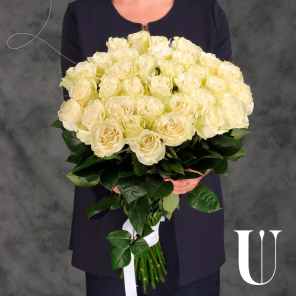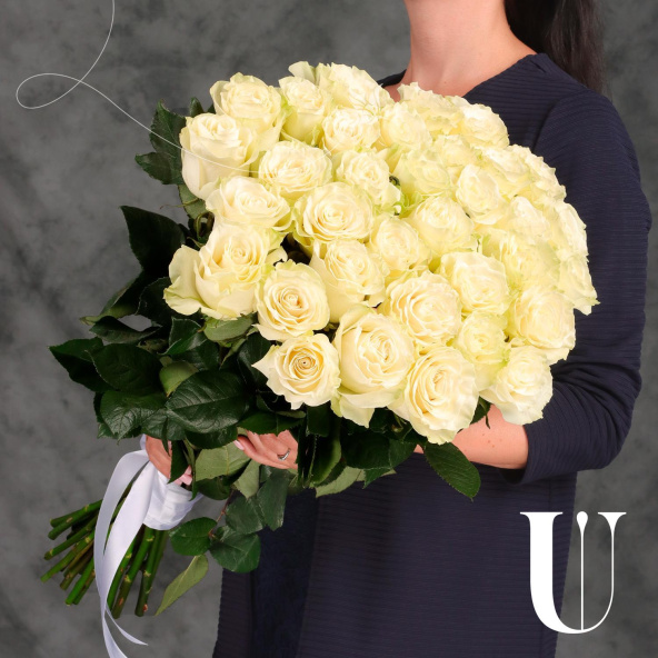 Роза Мондиаль, Эквадор, белая, 70 см. - 31 шт