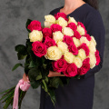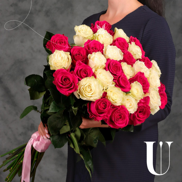 Букет из 35 белых и розовых Эквадорских роз, 70 см