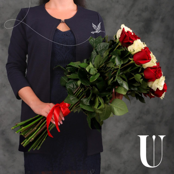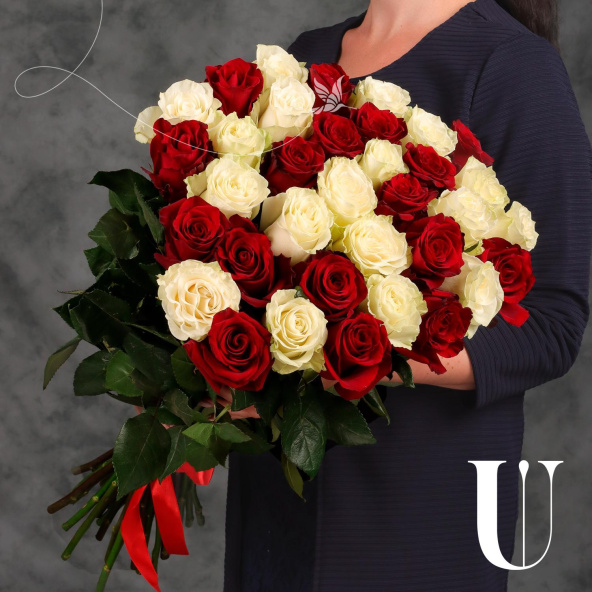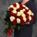 Букет "35 красных и белых Эквадорских роз 70 см"
