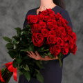 Букет из кустовых пионовидных роз микс в серой упаковке