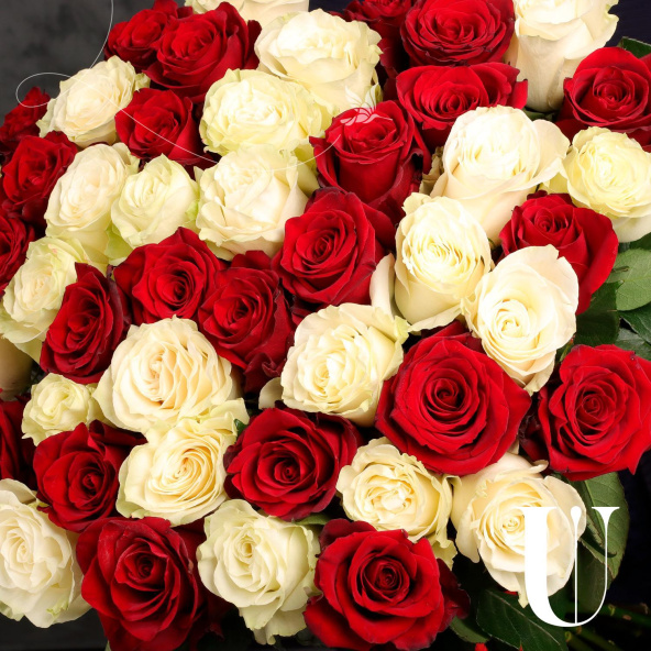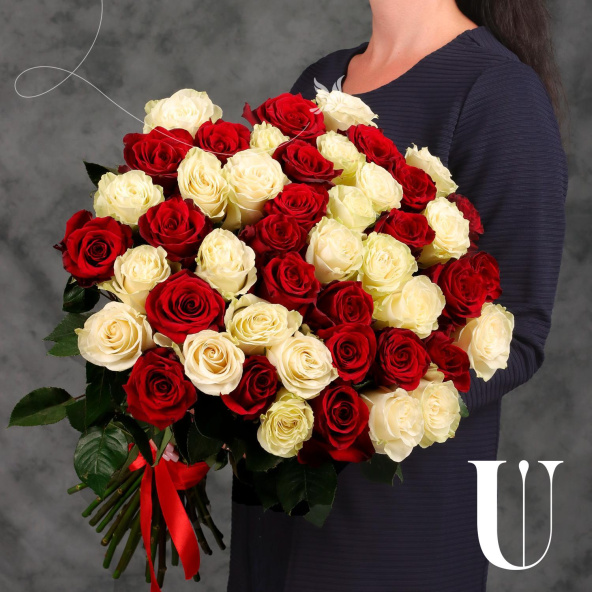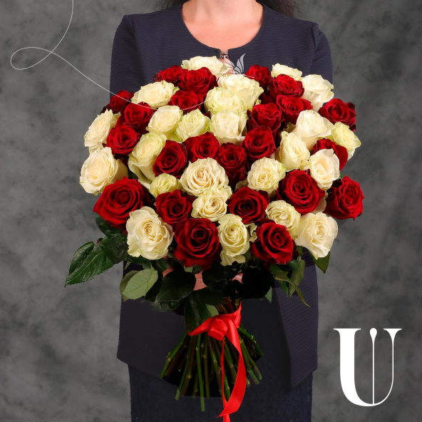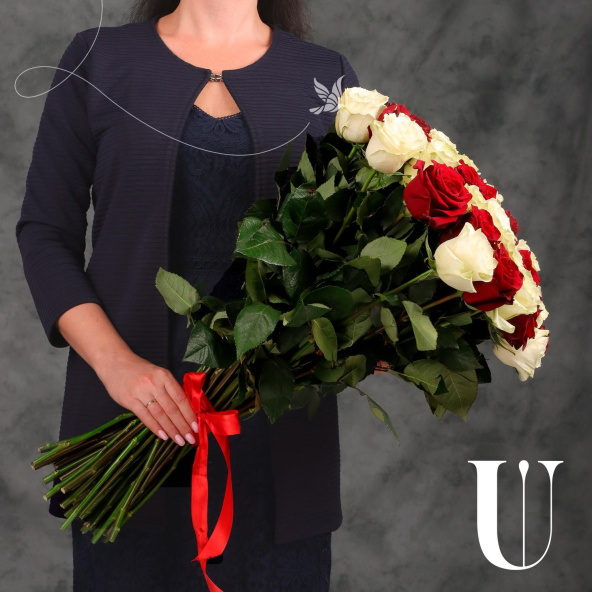 Букет "45 красных и белых Эквадорских роз 70 см"