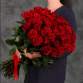 Монобукет из нежно-розовых и пудровых кустовых роз Бомбастик в дизайнерской упаковке