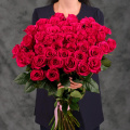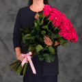 Монобукет из нежно-розовых и пудровых кустовых роз Бомбастик в дизайнерской упаковке