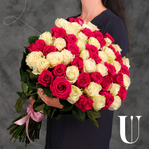 Букет "51 белая и розовая Эквадорская роза 70 см"