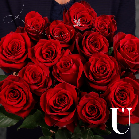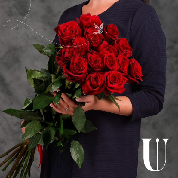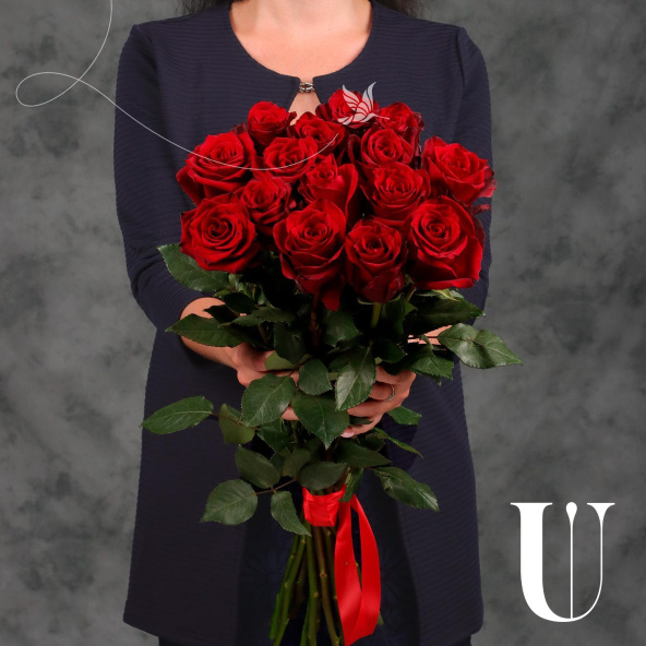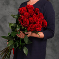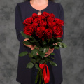 Монобукет из 15 пионовидных роз Кахала в упаковке